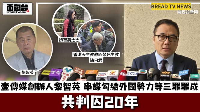 面包台「本地新聞報導」壹傳媒創辦人黎智英串謀勾結外國勢力等三罪罪成 共判囚20年