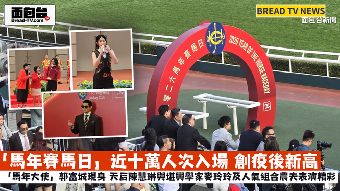 面包台「本地新聞報導」「馬年賽馬日」近十萬人次入場 創疫後新高 「馬年大使」郭富城現身 天后陳慧琳與堪輿學家麥玲玲及人氣組合農夫表演精彩