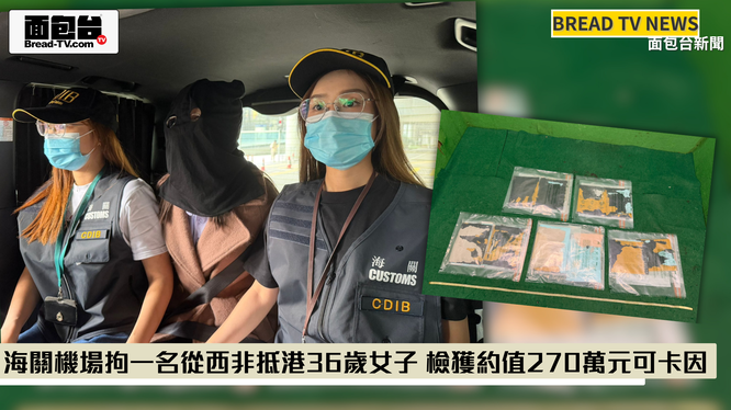 面包台「本地新聞報導」海關機場拘一名從西非抵港36歲女子 檢獲約值270萬元可卡因